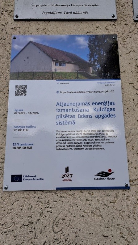 “Atjaunojamās enerģijas izmantošana Kuldīgas pilsētas ūdens apgādes sistēmā” Nr. 2.1.1.6/2/25/A/007